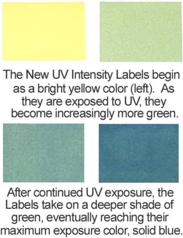 • New UV Intensity Labels 5001 are available in packages of 990 labels (9 sheets of 110 labels per sheet.)