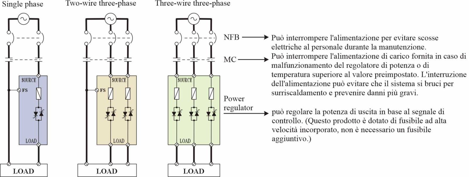 - In caso di surriscaldamento dell'SCR o di bruciatura del fusibile, l'uscita del sistema viene interrotta immediatamente. Una volta risolto il malfunzionamento e ripristinata l'alimentazione, il sistema bufferizzerà l'uscita per evitare la bruciatura del fusibile.